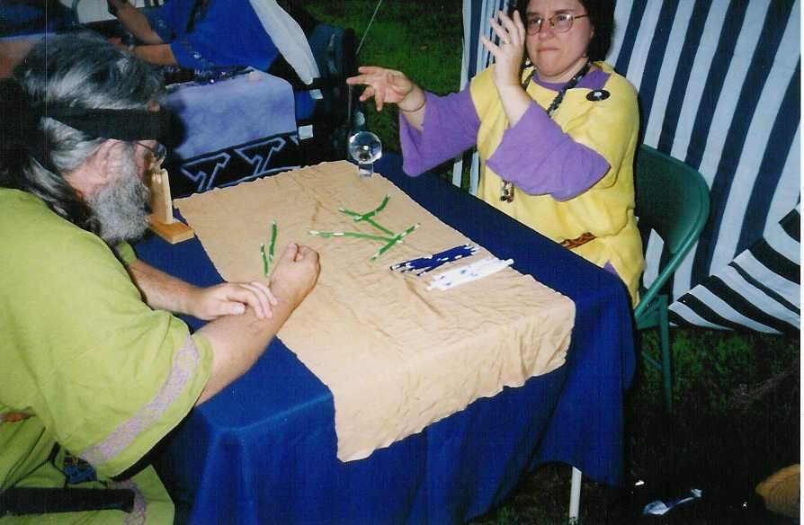 Lady Aurelie performing a runstick casting, at the Lakewood RenFaire, September 2003